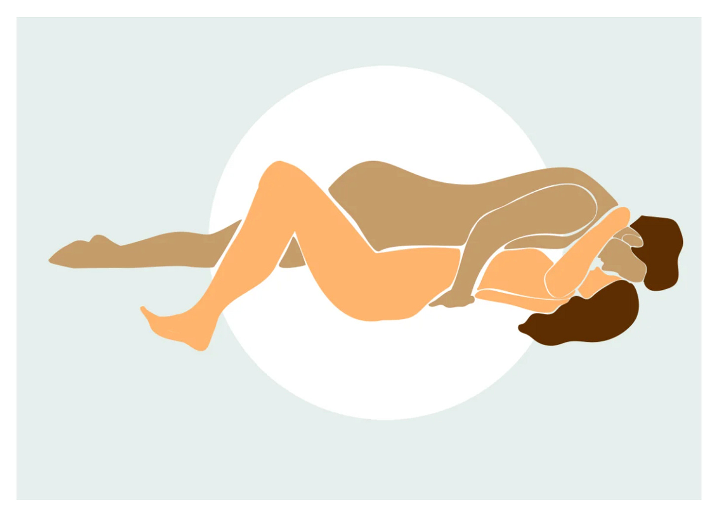 For people with back-facing vulvas, Stewart recommends “using a pillow to angle the vagina and vulva upward to gain better access.” To do this, place a pillow under the tailbone of the bottom partner to help tilt their hips up at the right angle.