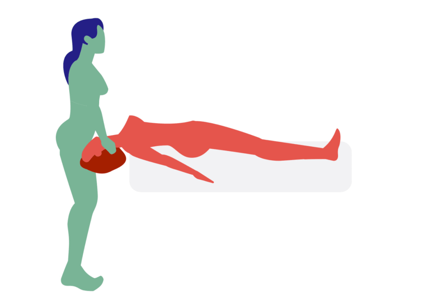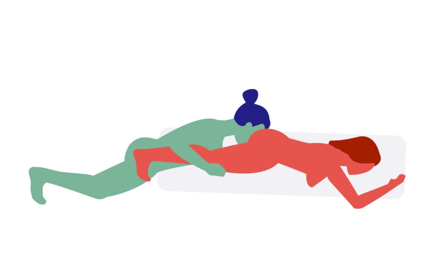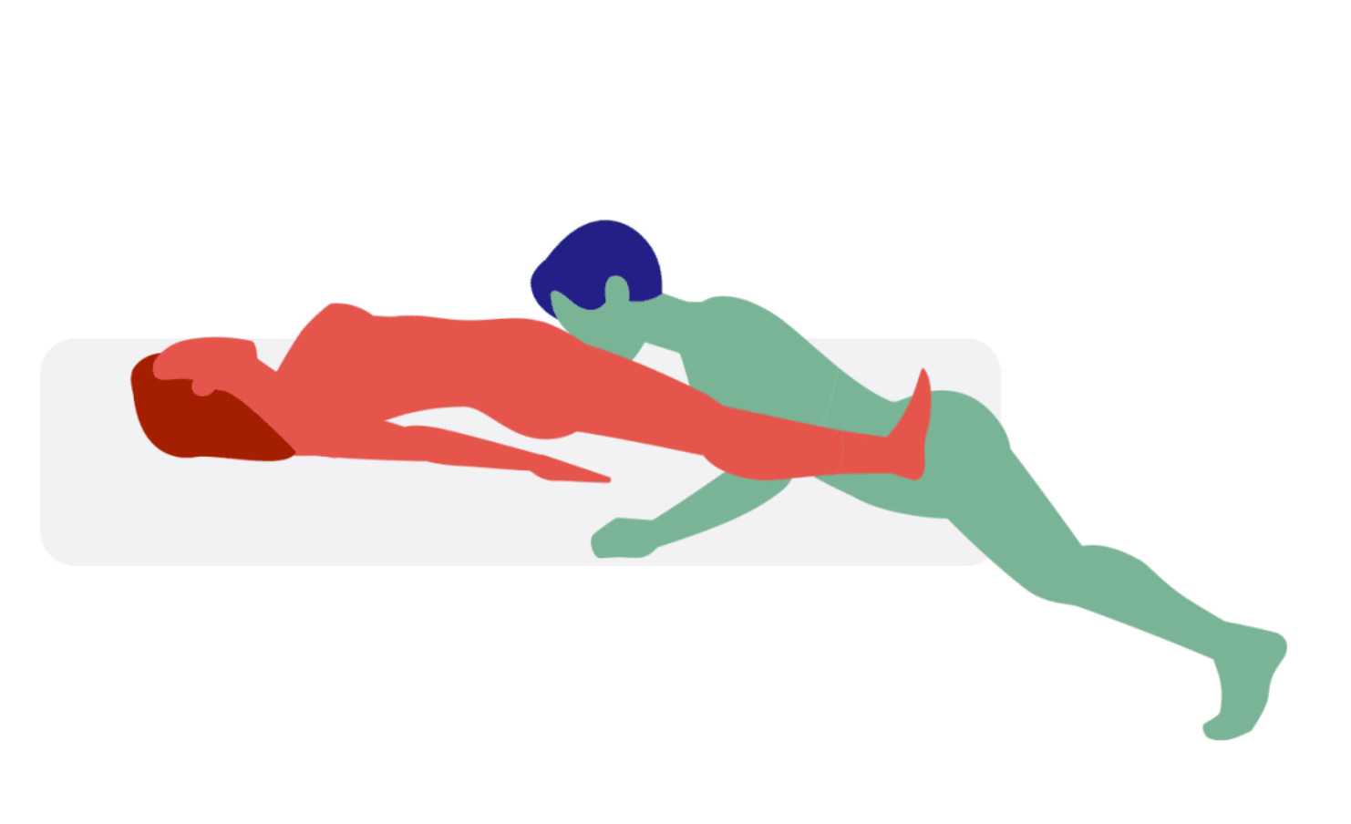 While you lie on your stomach, spread your legs and arch your hips slightly so your partner can orally pleasure you from behind. (A pillow can help!) This oral sex position caters to people with vulvas, and you also have free range to pleasure yourself with toys or your hands at the same time. It’s also great for rim jobs. Because the giver isn’t arching, elevating, or extending their butt, this is a bit more comfortable than doggy style, but they can still access the same parts of the receiver’s body.