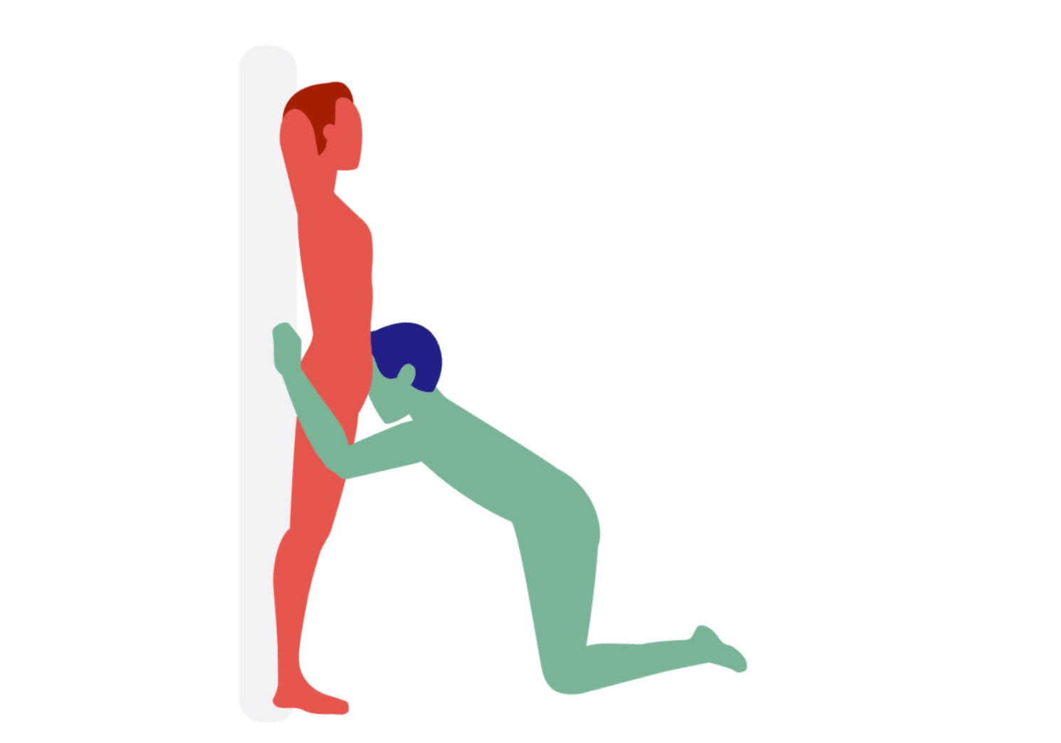 In this position, the receiver leans against a wall with their legs slightly apart and their pelvis pushed out, while the pleasurer kneels on the floor or sits. An oral sex position that works well for both vulva- and penis-havers, Cline says couples can enjoy this one anywhere, from the bedroom to the kitchen to the shower to the pantry and more.