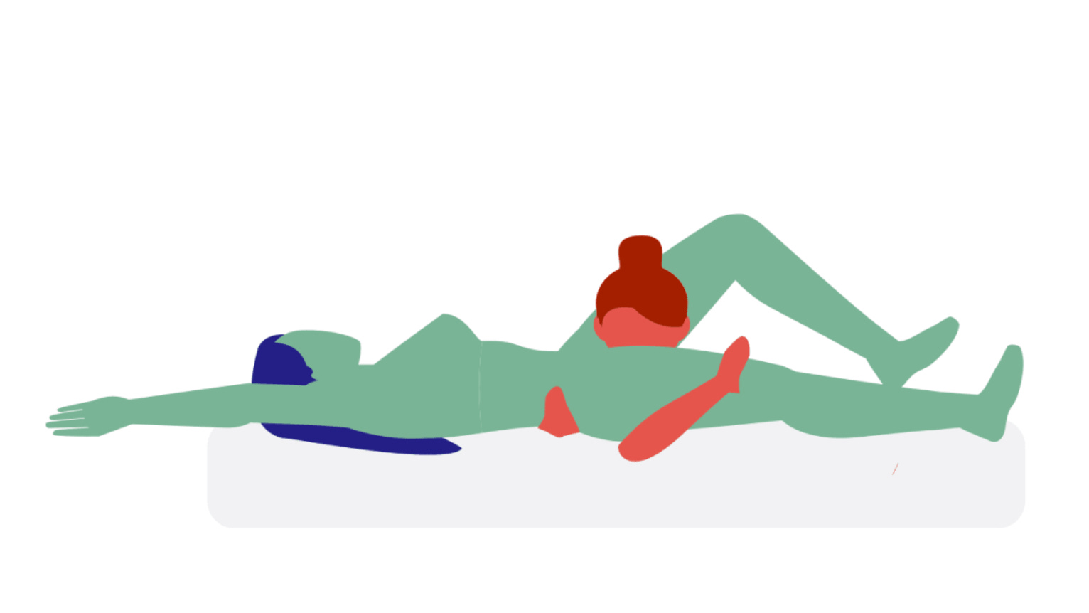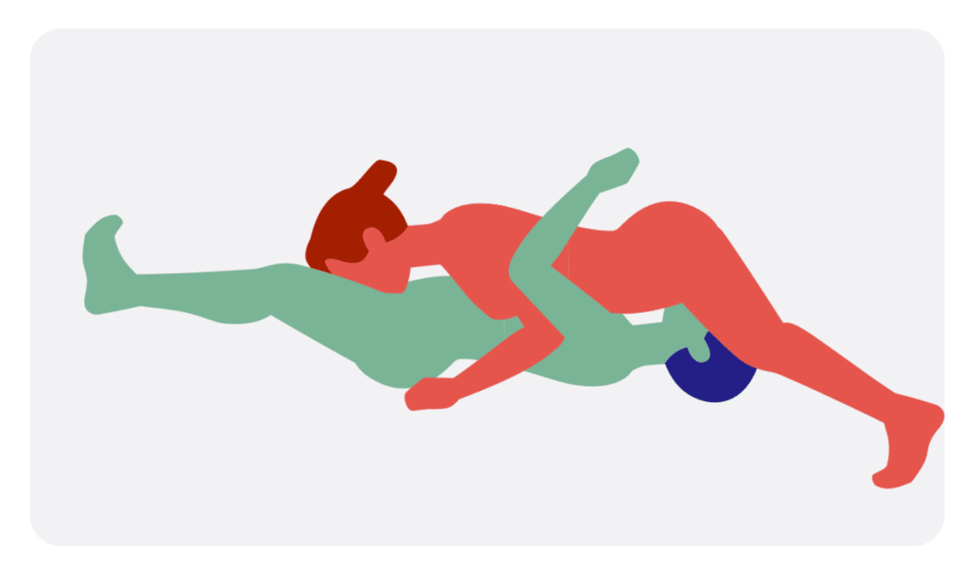 An oral sex position that works to give blowjobs and cunnilingus, the Kivin method puts a sideways flair to the classic position. This one requires the receiving partner to lie on their back while the giver lies perpendicular to their partner’s body. As the giver licks or sucks their partner’s genitals, the receiver can place a leg over their neck, which opens the legs more and increases clitoral stimulation.