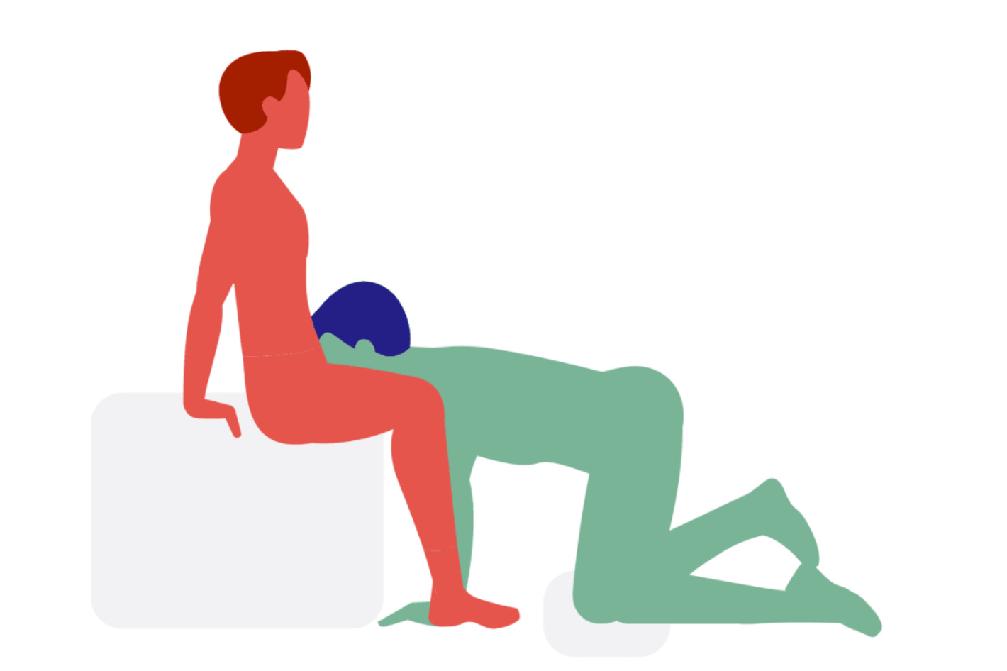 To make this a blowjob position, have the receiver sit at an angle and “feed” their penis into the giver’s mouth to reduce any neck tension or discomfort and the risk of suffocation.